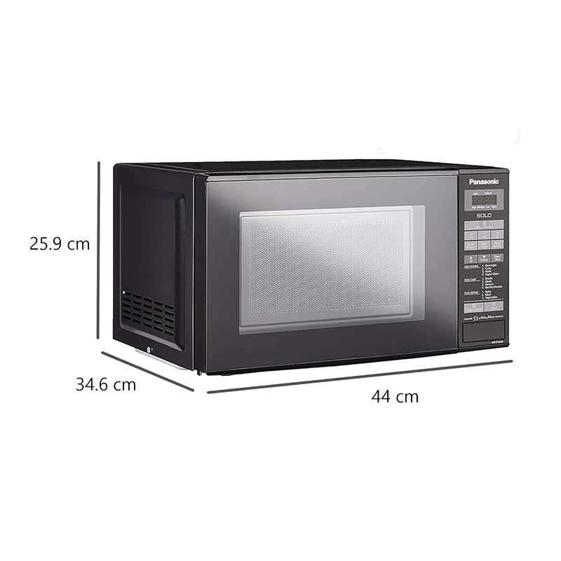 مایکروویو پاناسونیک مدل ST266B از نوع رومیزی بوده و با ابعاد 26*45*33 سانتیمتر و وزن 11.5 کیلوگرم در هر جایی از آشپزخانه قابل جای دهی ست. این دستگاه دارای یک سینی با قطر 25.5 سانتیمتر بوده که بعد از هر بار پخت و پز براحتی و با کمترین زمان می توانید این سینی را تمیز کنید. پنل تنظیمات این مایکروویو در سمت راست تعبیه شده و به شما کمک می کند تا به سادگی برنامه مورد نظر خود را انتخاب نمایید و همچنین با استفاده از آن مدیریت آسانی روی مایکروفر نیز داشته باشید.