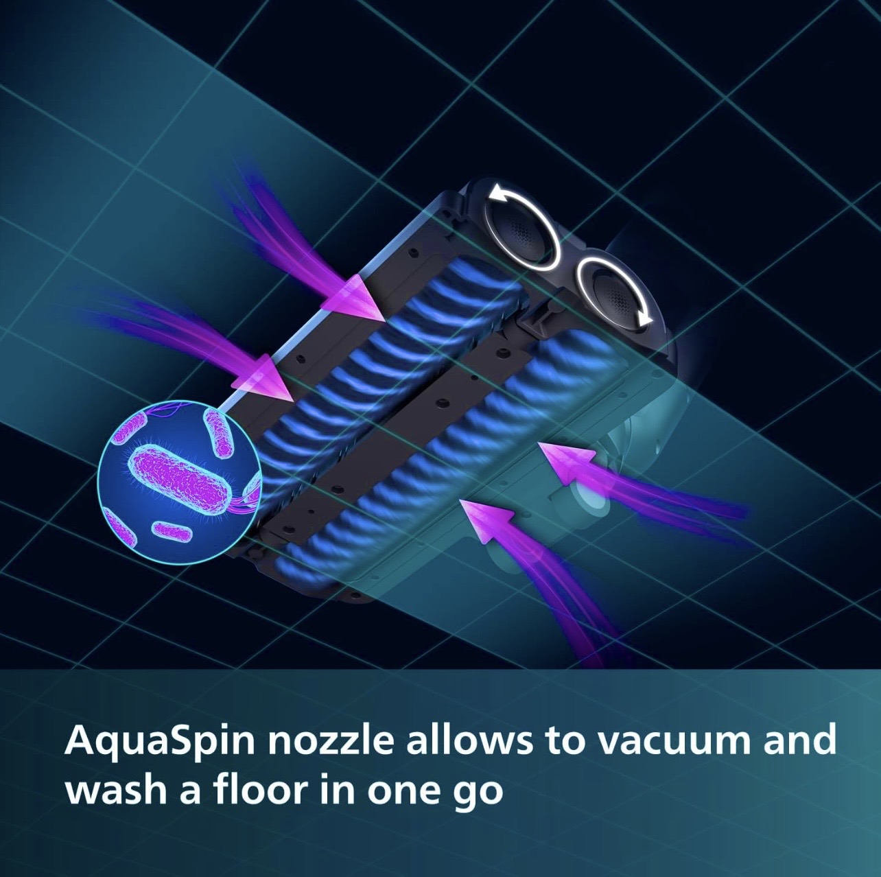 تکنولوژی AquaSpin و Aqua Diffusion: تکنولوژیهای پیشرفتهای مانند AquaSpin که برای کارکرد بهتر دستگاه در زمینهای سخت طراحی شده، و Aqua Diffusion که به جداسازی زبالههای خشک و خیس کمک میکند، تجربهای متفاوت از تمیزکاری ارائه میدهد.