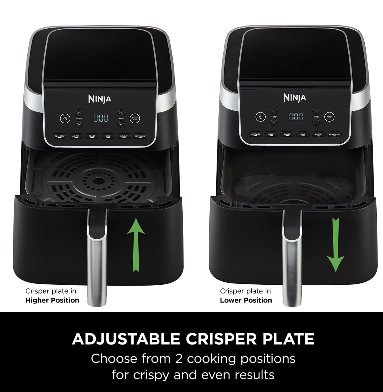 بشقاب کریسپر قابل تنظیم: امکان قرارگیری در دو حالت بالا و پایین برای پخت یکنواخت یا برشته کردن سطح غذا.
